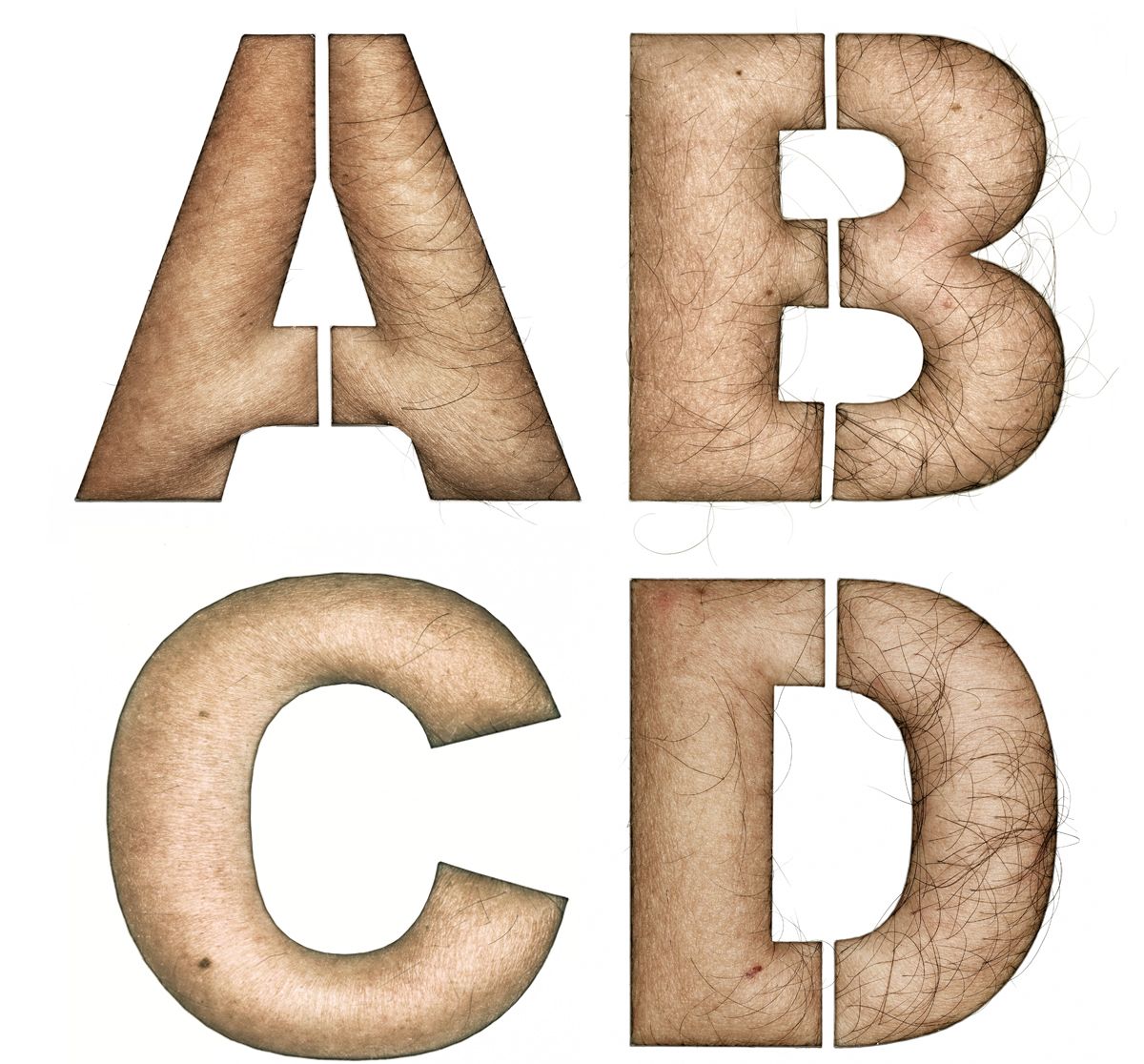 bits & Pieces a mingle-mangle of objects playing with hair, skin and a little discomfort. A modern Typefont based on a well shaped belly.